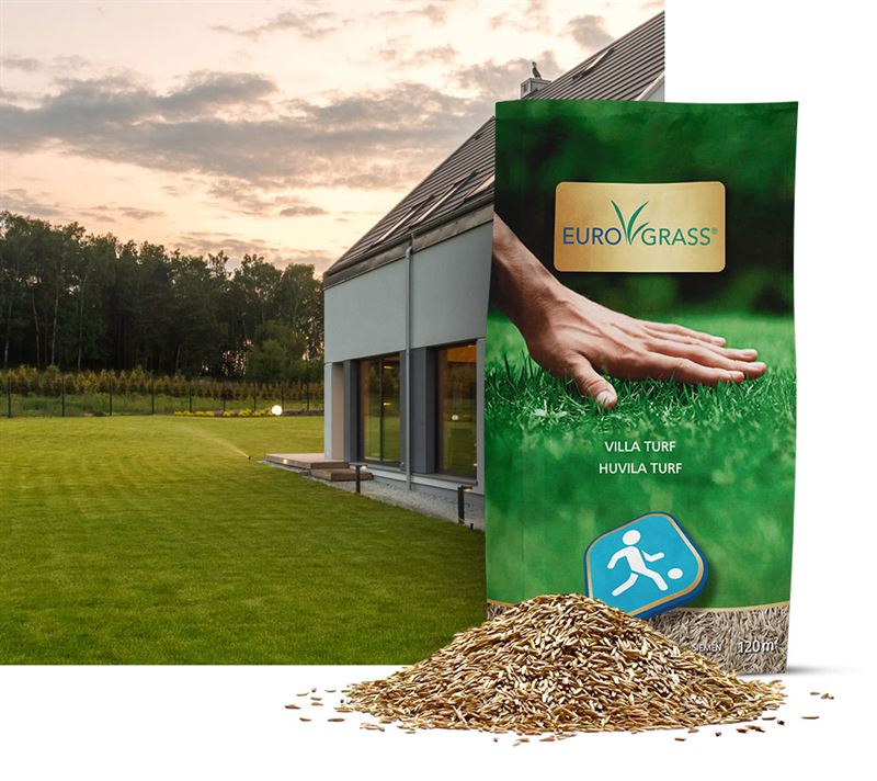 Villa-Turf er vores ”flagskib” på villaplænen. Med Villa-Turf får du anlægsgartnerens foretrukne blanding, en smuk tæt og vedvarende græsplæne, som er særdeles slidstærk og ekstra robust.
