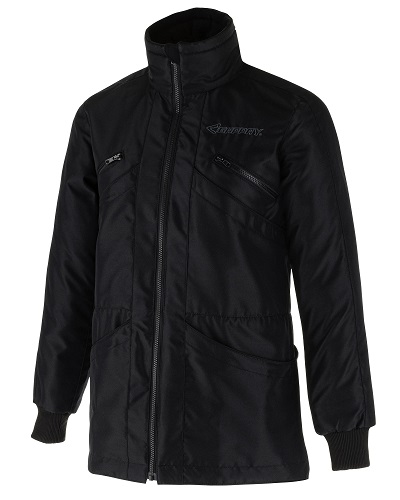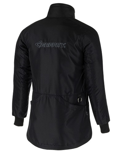 Slidstærkt materiale, polyamidfor, opretstående krave foret med behagelig fleece.
